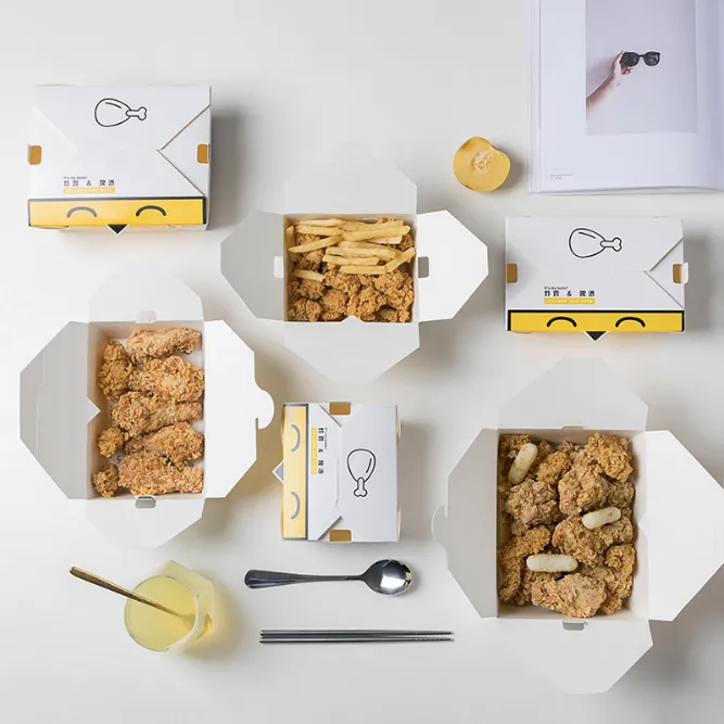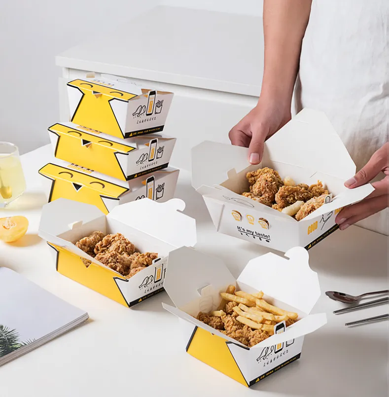 صندوق الدجاج المقلي هو نوع من حاويات التغليف الورقية للدجاج المقلي المصممة خصيصًا لصناعة الوجبات السريعة. صندوق الدجاج المقلي مصنوع من الورق المقوى الآمن غذائيًا المقاوم لدرجات الحرارة العالية والزيوت، ومقاوم للماء والتسرب، ومناسب للساخن والبارد، وسهل التعبئة. إنه صندوق دجاج مقلي عملي مع إغلاق وعزل جيد، والذي يمكن أن يحافظ بشكل فعال على نضارة ودرجة حرارة الدجاج المقلي. يدعم صندوق الدجاج المقلي الذي ينتجه مصنع Zemeijia الطباعة المخصصة وهو مناسب لمشاهد تناول الطعام في الخارج وتقديم الطعام والحفلات.