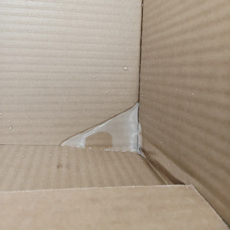 ● بالنسبة لسيناريوهات مثل تخزين المطبخ، والنقل في الأيام الممطرة، ودوران المنتجات الطازجة التي قد تتعرض للماء، فإن الجزء الخارجي من الصندوق مغطى بالكامل بطبقة شمعية شفافة صالحة للطعام. يمكن مسح الانسكابات العرضية لصلصة الصويا أو الماء بسهولة بقطعة قماش، ولن يتقشر طبقة الشمع أو يسمح للرطوبة بالتسرب إلى طبقات الورق، مما يتسبب في تليين الصندوق. حتى في حالة رذاذ المطر الخفيف لفترة وجيزة، لن تكون هناك علامات مائية، وتبقى صلابة الصندوق دون تغيير.
