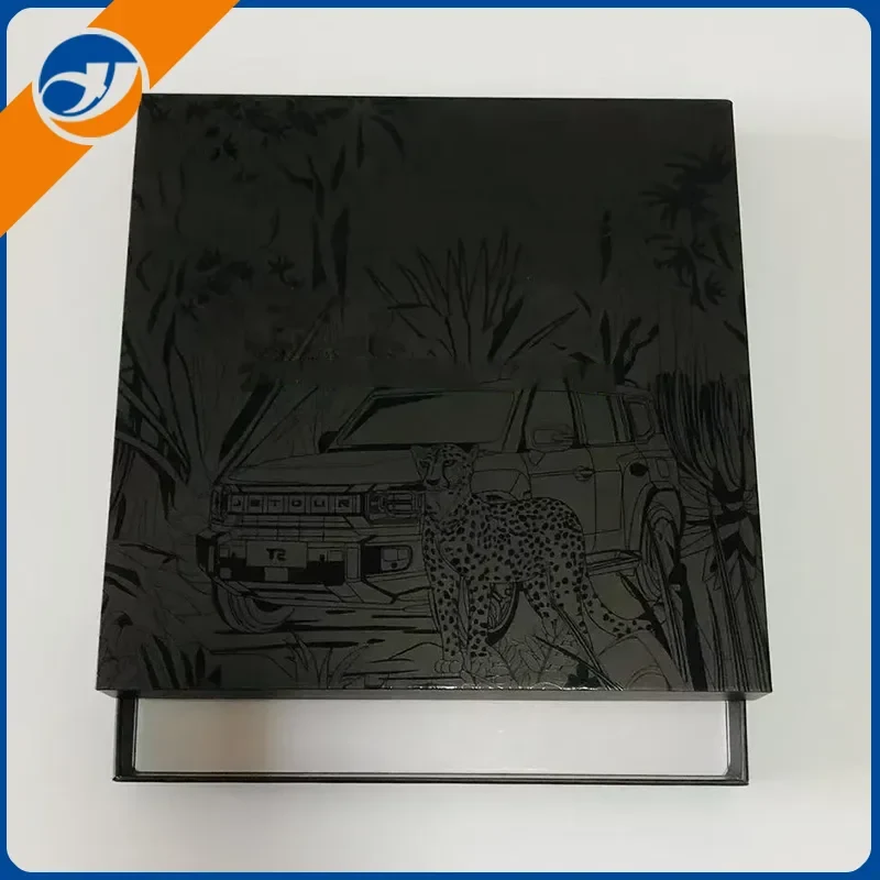 صندوق الهدايا الأسود المنقوش غير اللامع مصنوع من ورق خاص وألواح صلبة، مما يوفر لمسة رقيقة مع كونه مقاومًا للتآكل والخدش. سطحه يقاوم بصمات الأصابع، مما يسلط الضوء على نسيج ممتاز. يتميز الغطاء بنقش ثلاثي الأبعاد مع أنماط مركبات الغابة والفهد والطرق الوعرة، مكملة بشعارات العلامة التجارية المصنوعة من رقائق الذهب. ينضح نظام الألوان الكلاسيكي باللونين الأسود والذهبي بالفخامة مع طبقات مميزة. مصمم بهيكل مسطح من السماء والأرض، يفتح الصندوق ويغلق بسلاسة، ويحافظ على شكل ثابت دون تشوه، ويتميز بمساحة داخلية مسطحة مثالية لتخزين العناصر الفاخرة الرفيعة. مع موضوع "الاستكشاف" المزخرف باللون الأسود غير اللامع لعلبة الهدايا، يجمع التصميم بين الجاذبية الخارجية والأناقة الراقية، مما يعزز بشكل فعال صورة العلامة التجارية وتذكرها. بالإضافة إلى ذلك، يدعم صندوق الهدايا التخصيص الكامل، بما في ذلك الأنماط المنقوشة والنصوص المصنوعة من رقائق الذهب، لتلبية احتياجات التغليف الشخصية المتنوعة بمرونة.